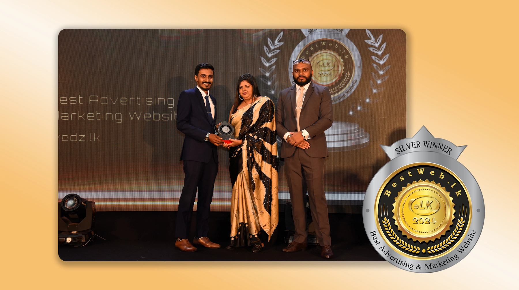We're honored to have received the Silver Award for Best Advertising & Marketing Website at Best Web LK 2024 for our work on the 'Wedz website'. This recognition shows our commitment to innovative web design and setting new standards in the digital space.