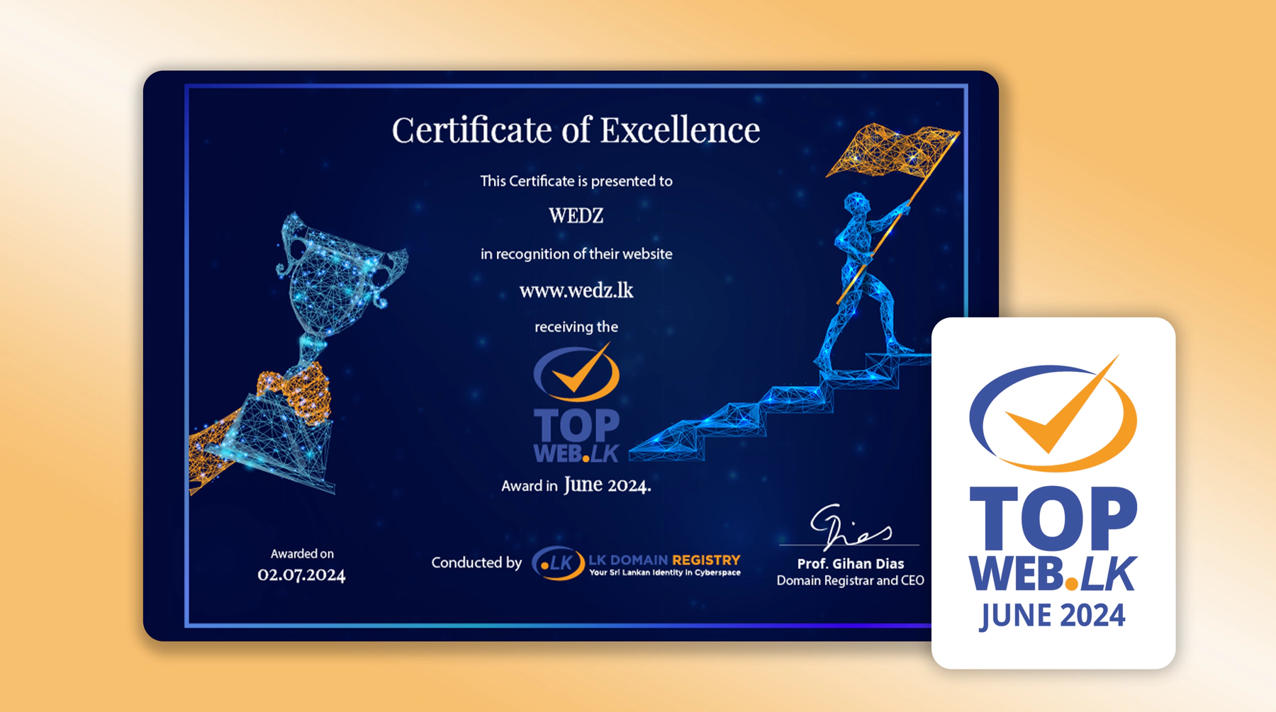 Our project 'Wedz website' was awarded with the Top Web LK Award - June 2024, celebrating our innovative approach and unique features integrated to the website itself, along with rich accessibility features included.